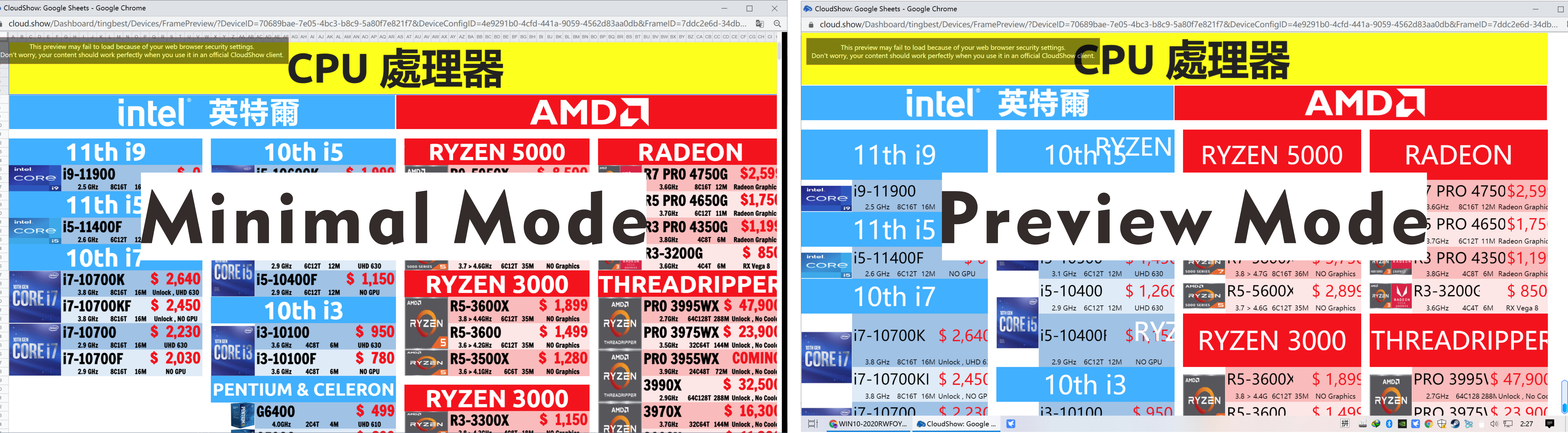 Hello, when you edit the Google Sheets CloudShow app settings there is a 'Mode' option. Have you tried each of the 4 modes to see if one of them gives you the desired look? Thanks!